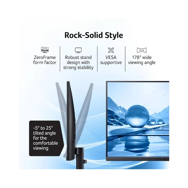 - Vibrant Colours Experience immaculate Picture quality with IPS Full HD Resolution I Frameless Design I 178 degree wide viewing angles I 250 Nits Brightness I 1500:1 Contrast Ratio I Robust stand design with strong stability