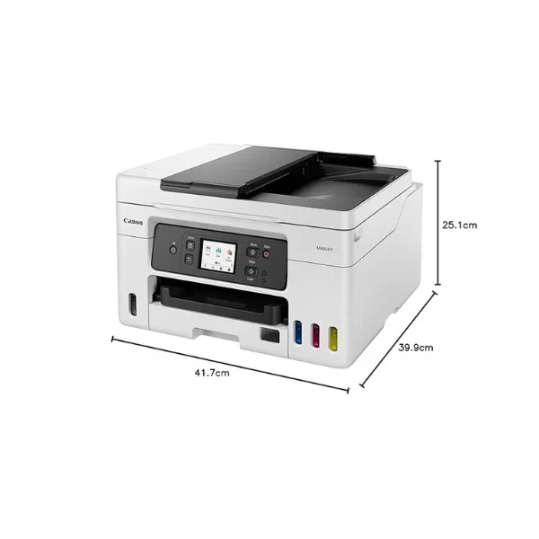 - Page size :A4, A5, A6, B5, LTR, LGL, B-Oficio, M-Oficio, Foolscap, FS, Executive, Envelope [COM10, DL, C5, Monarch]; Max paper thickness: 64 to 275 GSM ; Maximum Input Sheet Capacity: 250 sheets (A4) Compatible Ink GI-76 CYMK; Additional Printer Function: FAX ; Power wattage of printer: OFF- 0.1W, Standby- 0.8W, Copying- 18W