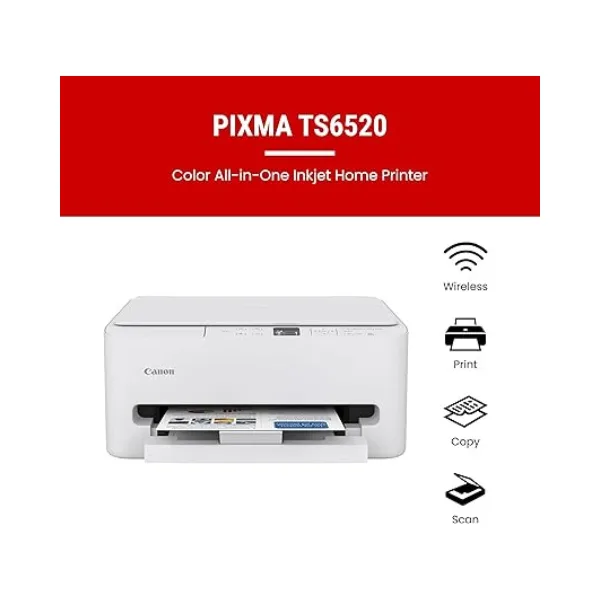 Included Components: PIXMA TS6520 Printer, Power Cord, Setup and Other Documentation, Starter Set of Ink Tanks (PG-295 BK & CL-286)