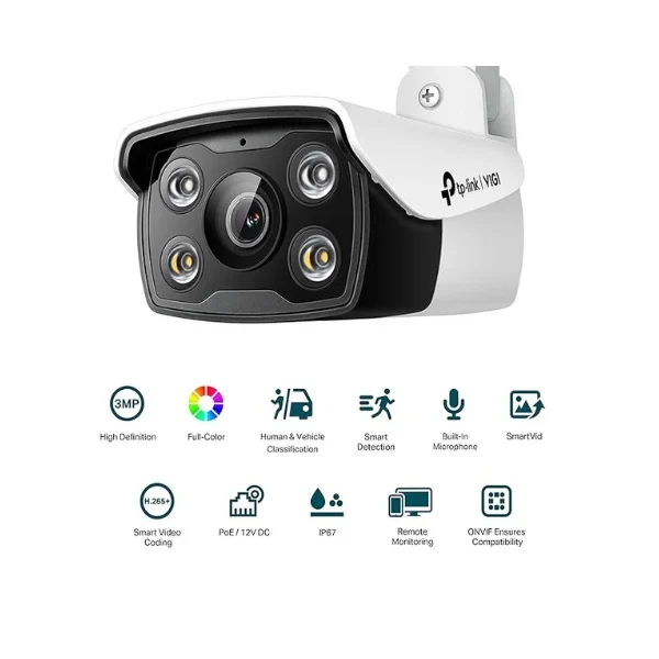 Product Dimensions: 50 x 50 x 28 cm; 200 g Date First Available: 15 March 2023 Manufacturer: TP-Link, TP-Link Corporation, South Building, No.5 Keyuan Road, Central Zone, Science & Technology Park, Nanshan, Shenzhen, P.R. China Item Model Number: VIGI C330 (2.8mm) Country of Origin: China Packer: TP-Link Corporation, South Building, No.5 Keyuan Road, Central Zone, Science & Technology Park, Nanshan, Shenzhen, P.R. China Importer: TP-Link India Pvt. Ltd., Green Industrial Park, Dongri Pada, Poman, Kaman-Bhiwandi Road, Vasai East, Palghar, Maharashtra – 401208, Contact: Toll Free 1800 2094 168, support.in@tp-link.com Item Weight: 200 g Item Dimensions (L x W x H): 50 x 50 x 28 Centimeters Net Quantity: 1 count Included Components: VIGI Network Camera, Quick Start Guide, Waterproof Cable Attachments, Mounting Accessories Generic Name: Bullet Camera