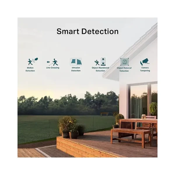 Smart Detection —— Receive notifications and check feeds when someone crosses a boundary, enters an area you've set, obstructs the camera, or removes/abandons objects.