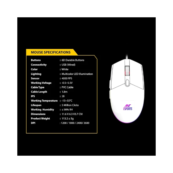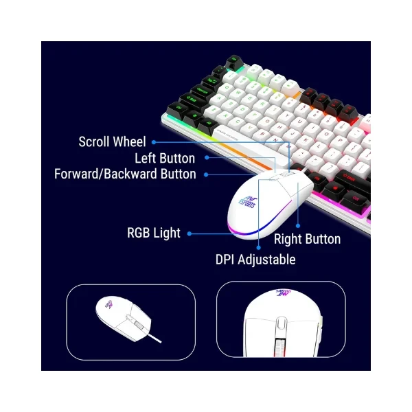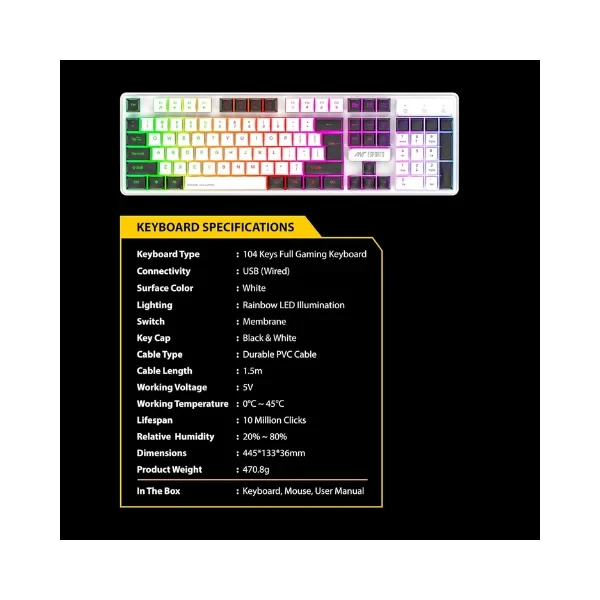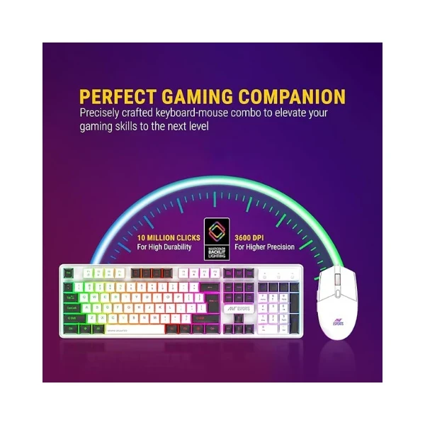 Ant Esports KM1610 LED Gaming Keyboard and Mouse Combo, 104 Keys Rainbow Backlit Keyboard and 7 Colour RGB Mouse for PC Laptop Xbox PS4 Gamers and Work, White