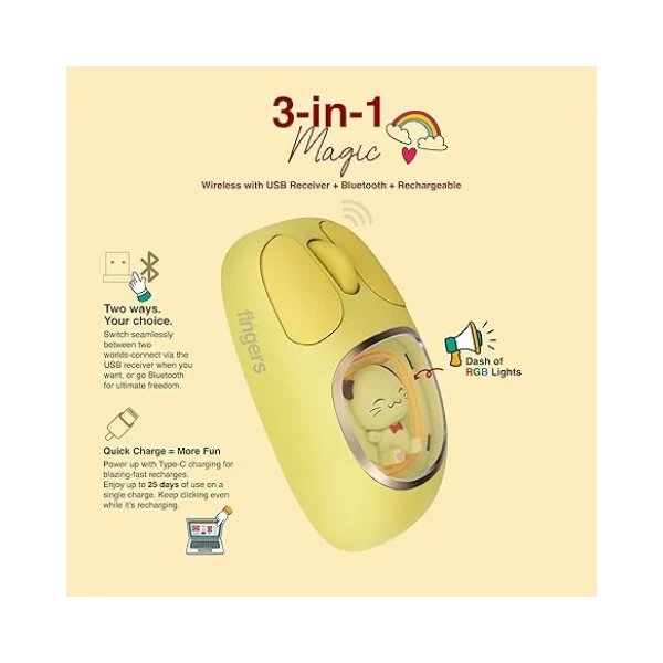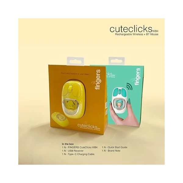 Adorable & Compact Design: In a sea of monotonous tech gadgets, CuteClicks WB4 stands out with its vibrant colours and a unique design. More than just a mouse—it’s a statement piece that brings joy to any desk.