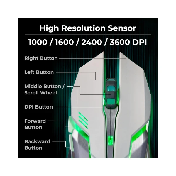 Providing enhanced control, the mouse includes dedicated buttons for DPI adjustment as well as forward and backward navigation, so your gaming is made easier