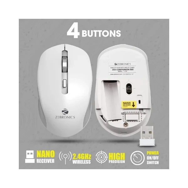 - USB Nano Receiver (Note: USB receiver will be provided inside battery slot or along with the packaging)